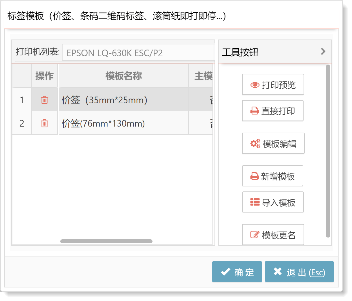 五、【模板更名】:对表格中当前选中的模板重命名。