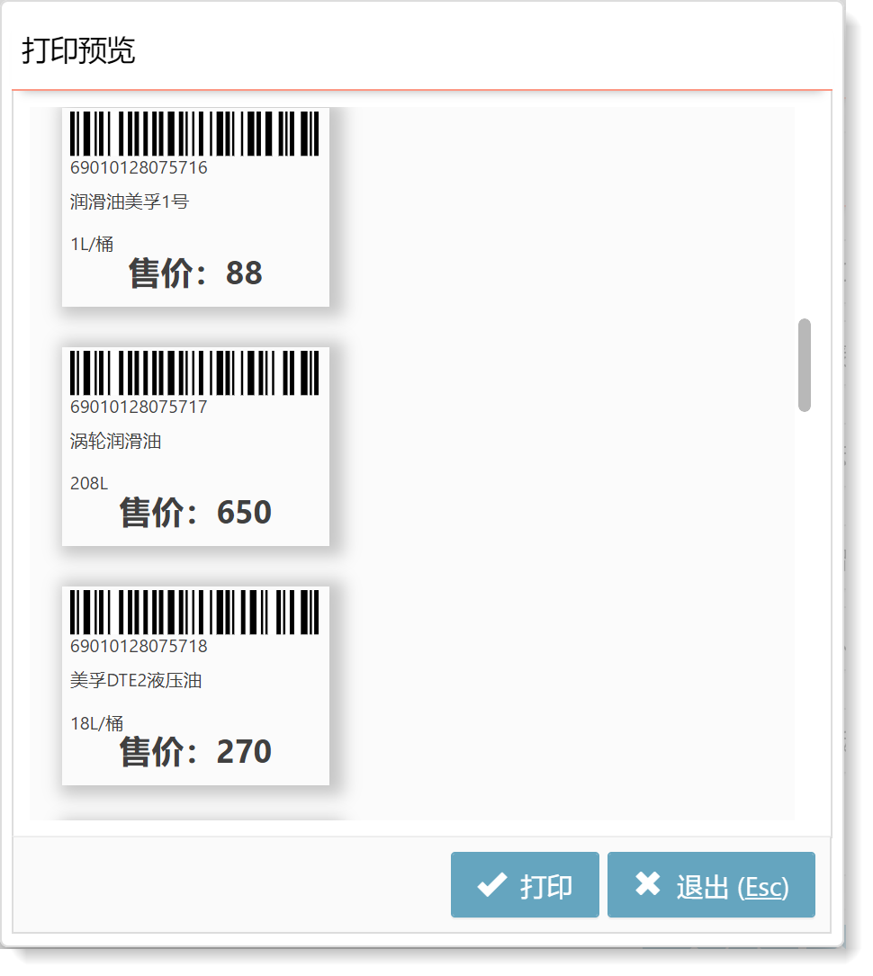 点击【打印】按钮会直接调用默认打印模板和系统的默认打印机进行直接打印;